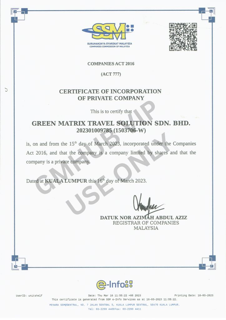 - Lesen GoGreenMatrix tidak boleh digunakan sebagai lesen operasi individu tanpa kebenaran bertulis dan mematuhi syarat pihak berkuasa yang terlibat.